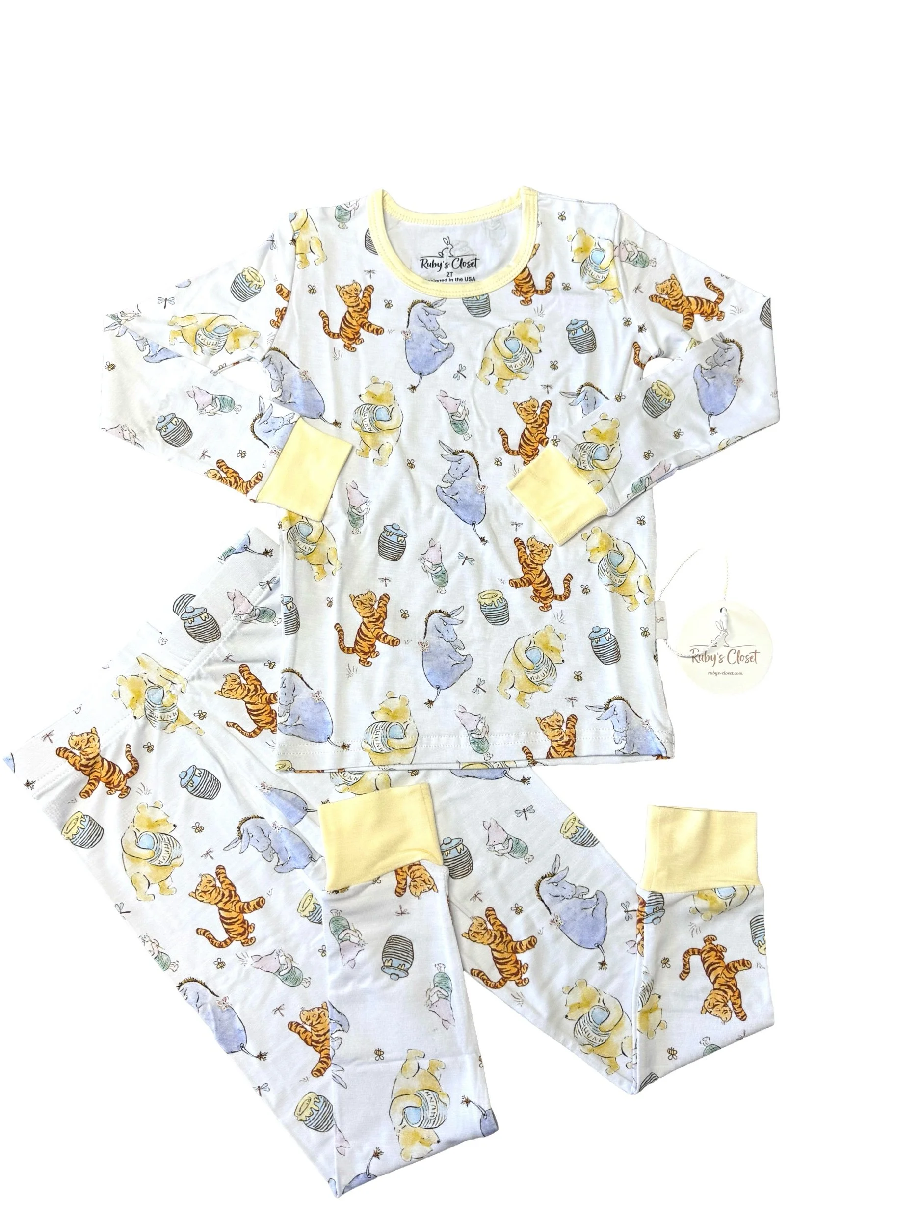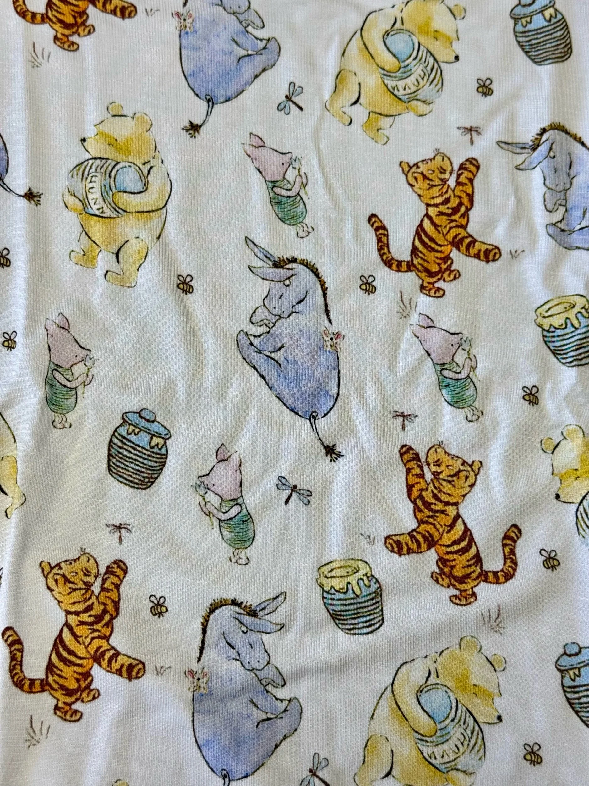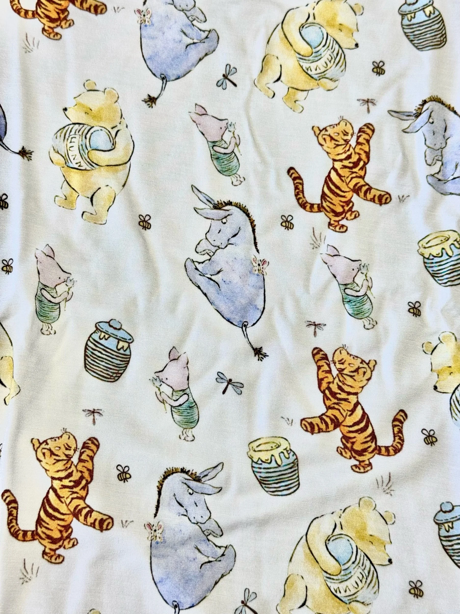 Bring a touch of timeless charm to bedtime with our Day and Nightie™ in the Vintage Pooh print. This classic, hand-drawn style features beloved forest friends and honey pots on a soft cream background, perfect for a cozy, nostalgic feel.
